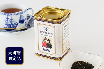 インドとスリランカの茶葉をブレンドした「霧笛楼元町ブレンド」。香りと美味しさを保つ缶入りリーフティー(100g)は、霧笛楼元町仏蘭西菓子店(本店)だけのお取り扱いです。ティータイムのお供に。(税込¥1620)